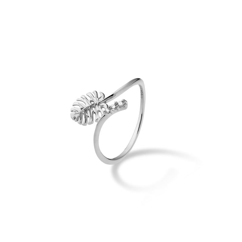 Monstera Ring in White Gold with Diamonds - 9mm