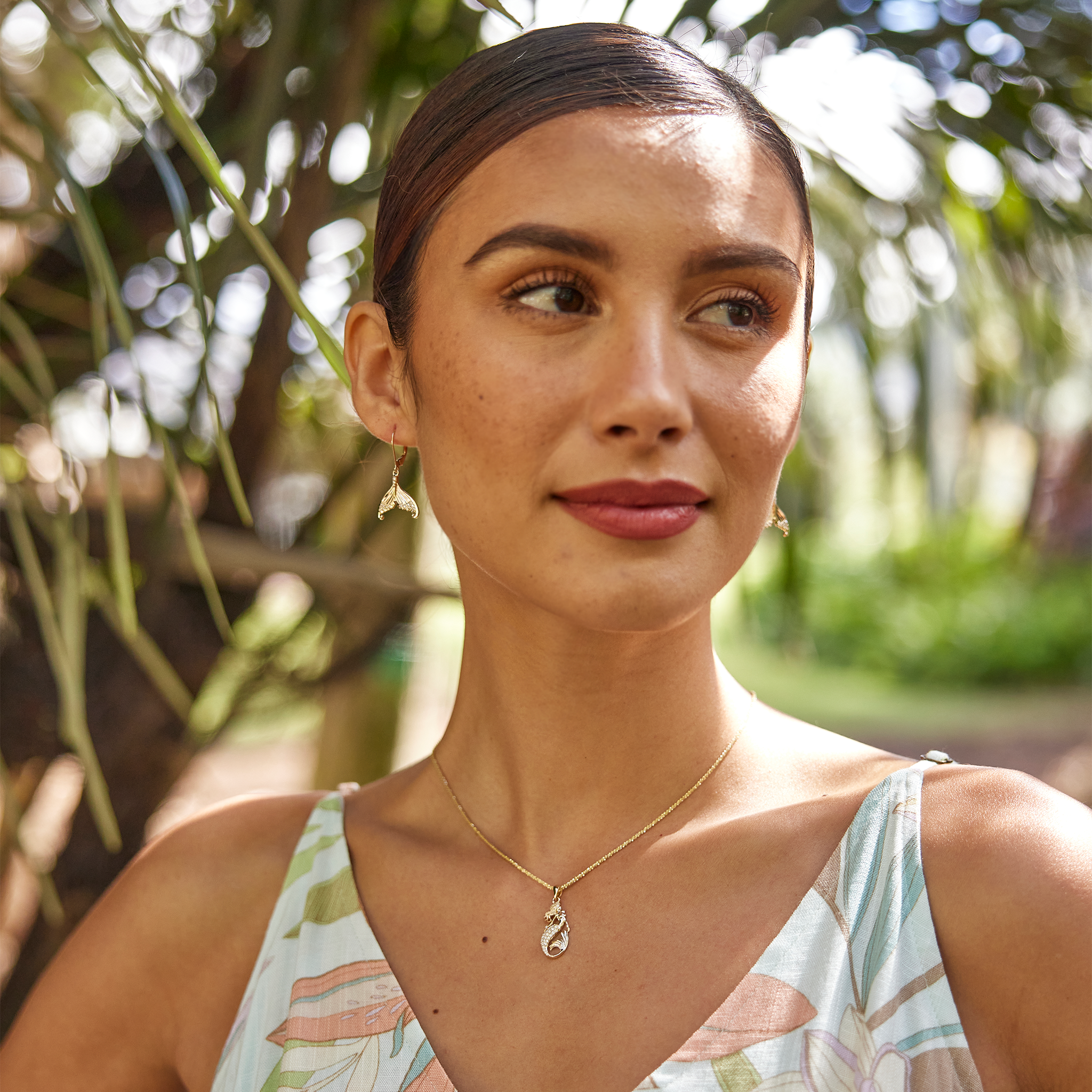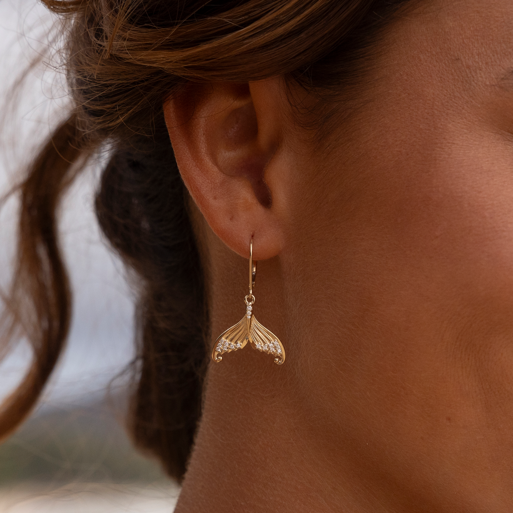 Moon Mermaid Tail Earrings in Gold with Diamonds - 31mm