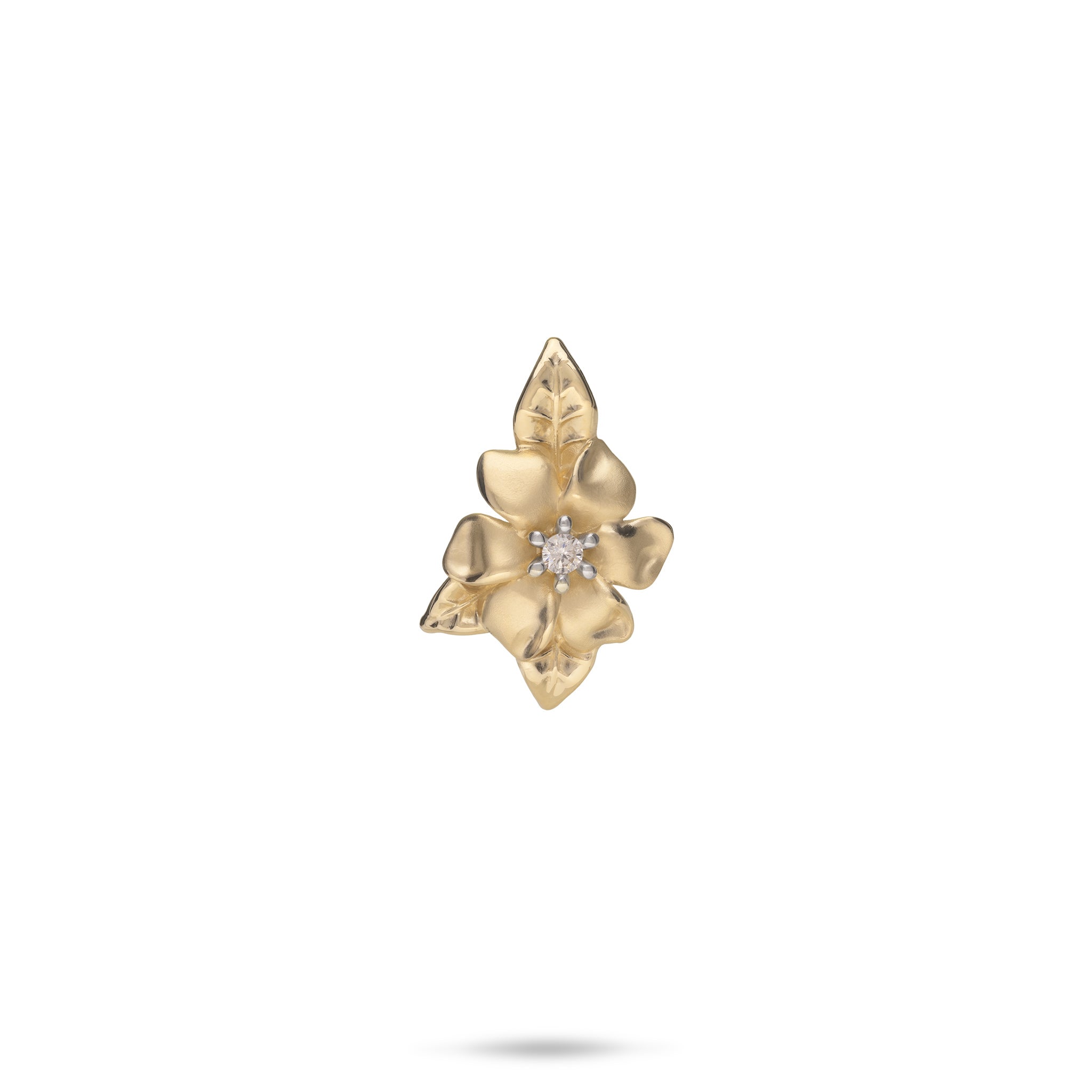 The Nāʻū Pendant is inspired by the charming Native Hawaiian Gardenia. The pendant features delicate petals with a soft flow in glistening satin-finished gold. Leaves frame the flower and hide the bail just along the top to accentuate its organic design. Just as the sweet fragrance of the Nāʻū brings a soft smile to your face, wear the Nāʻū to represent one bearing good news and the happiness that fills you.