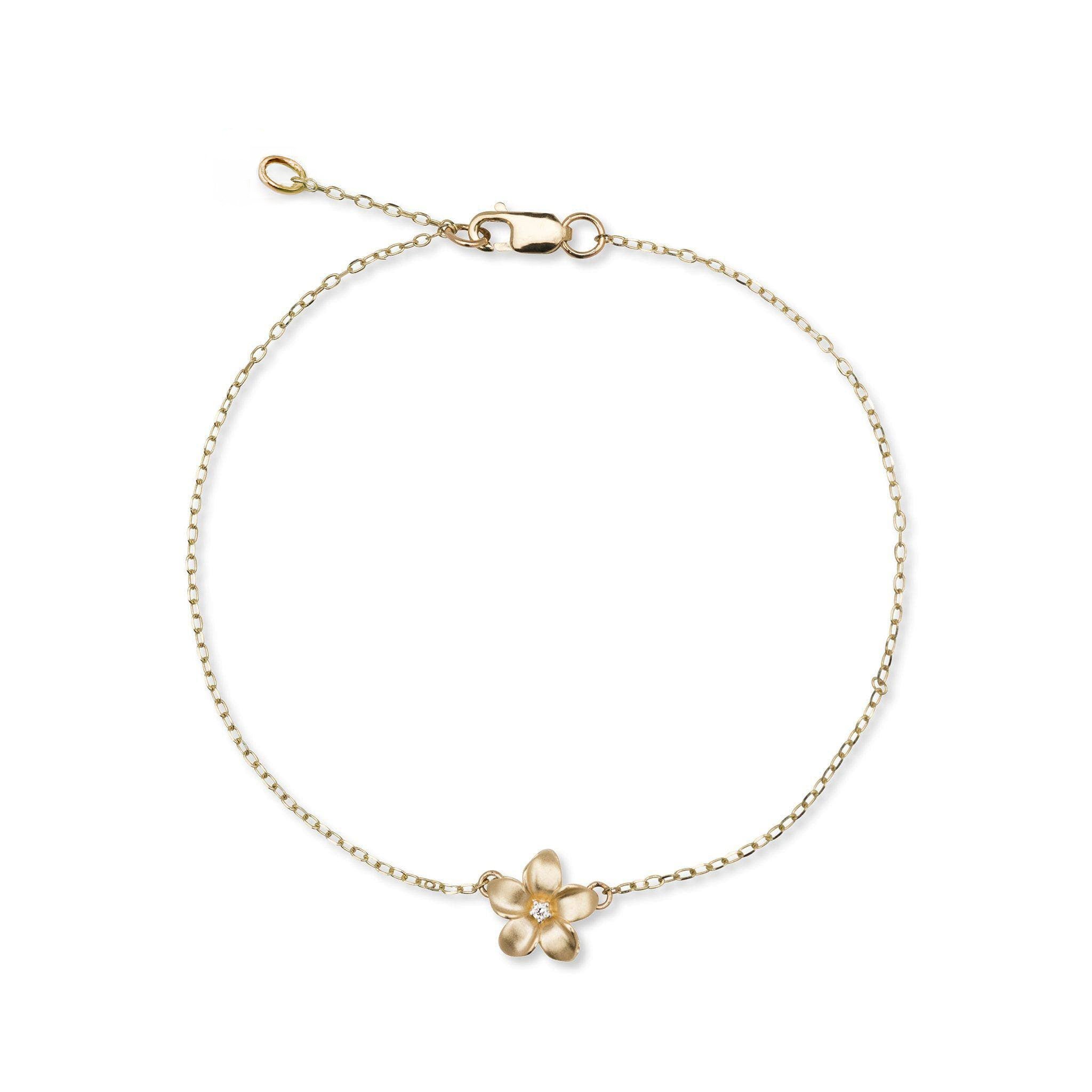 Adjustable 7-7.5" Plumeria Bracelet in Gold with Diamond - 9mm