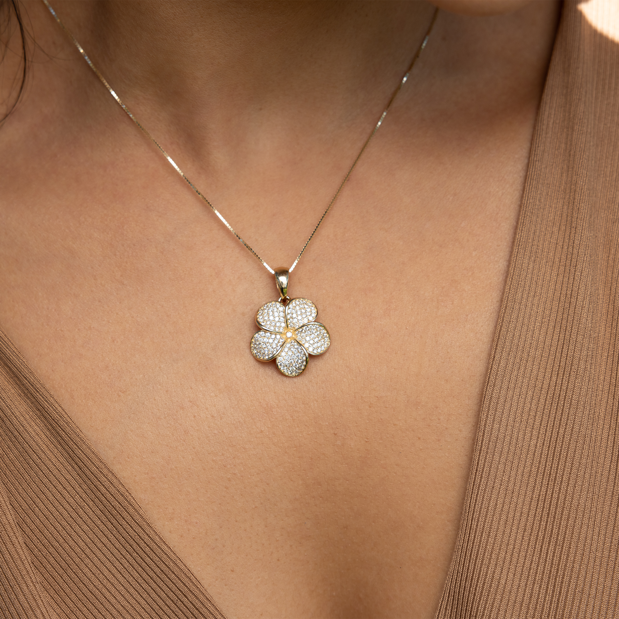 Plumeria Pendant in Gold with Diamonds - 20mm