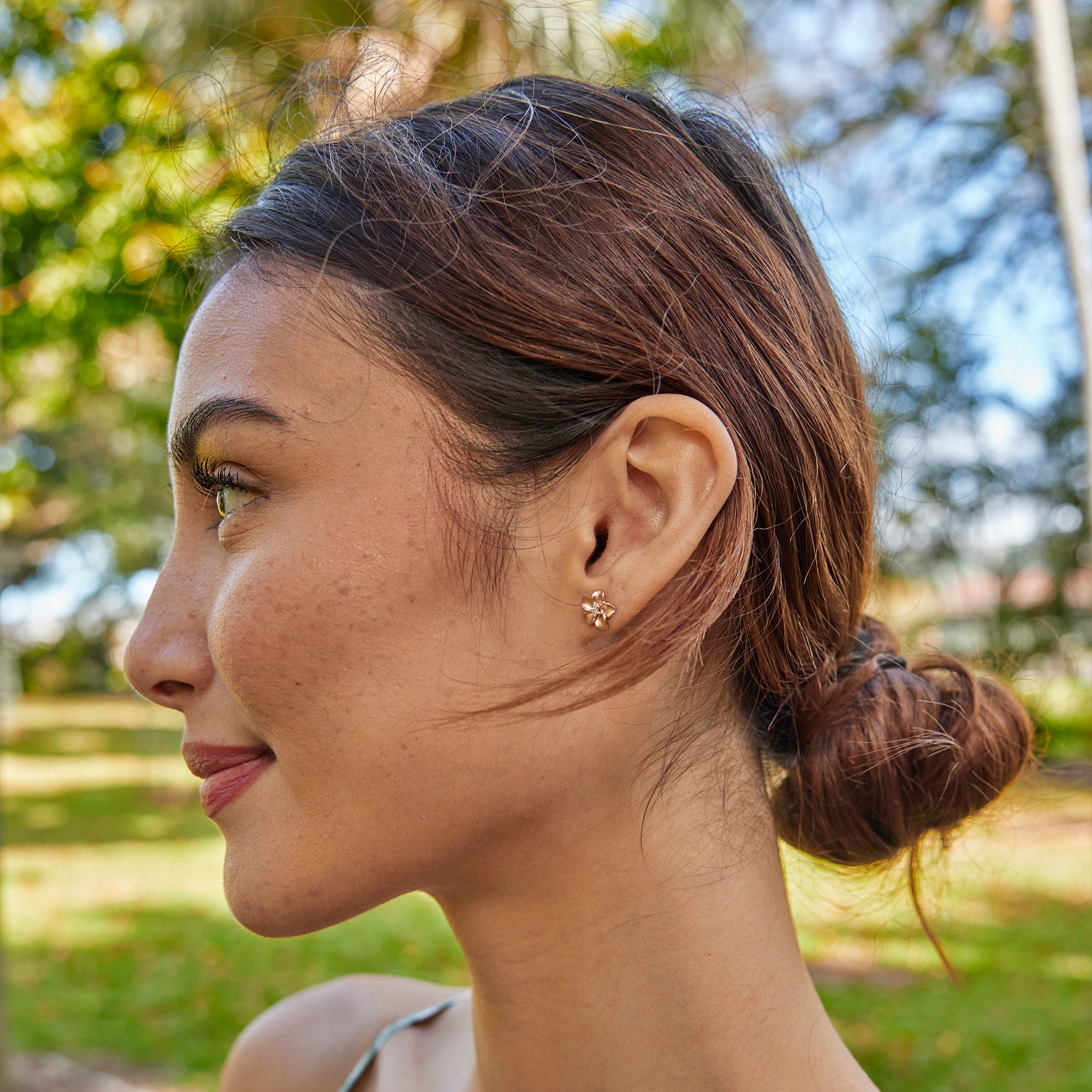 Plumeria Earrings in Rose Gold with Diamonds - 9mm