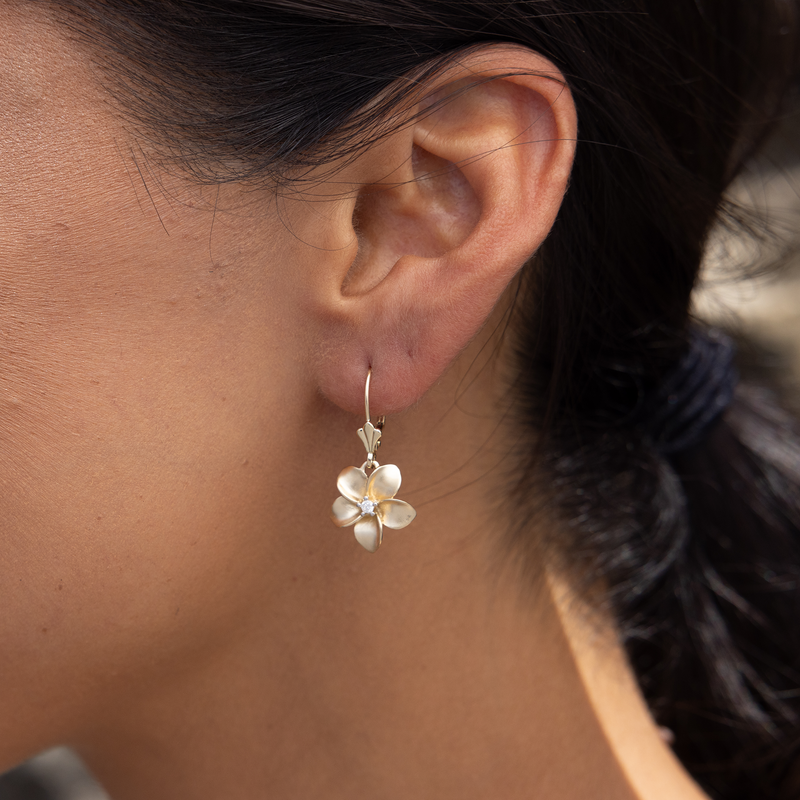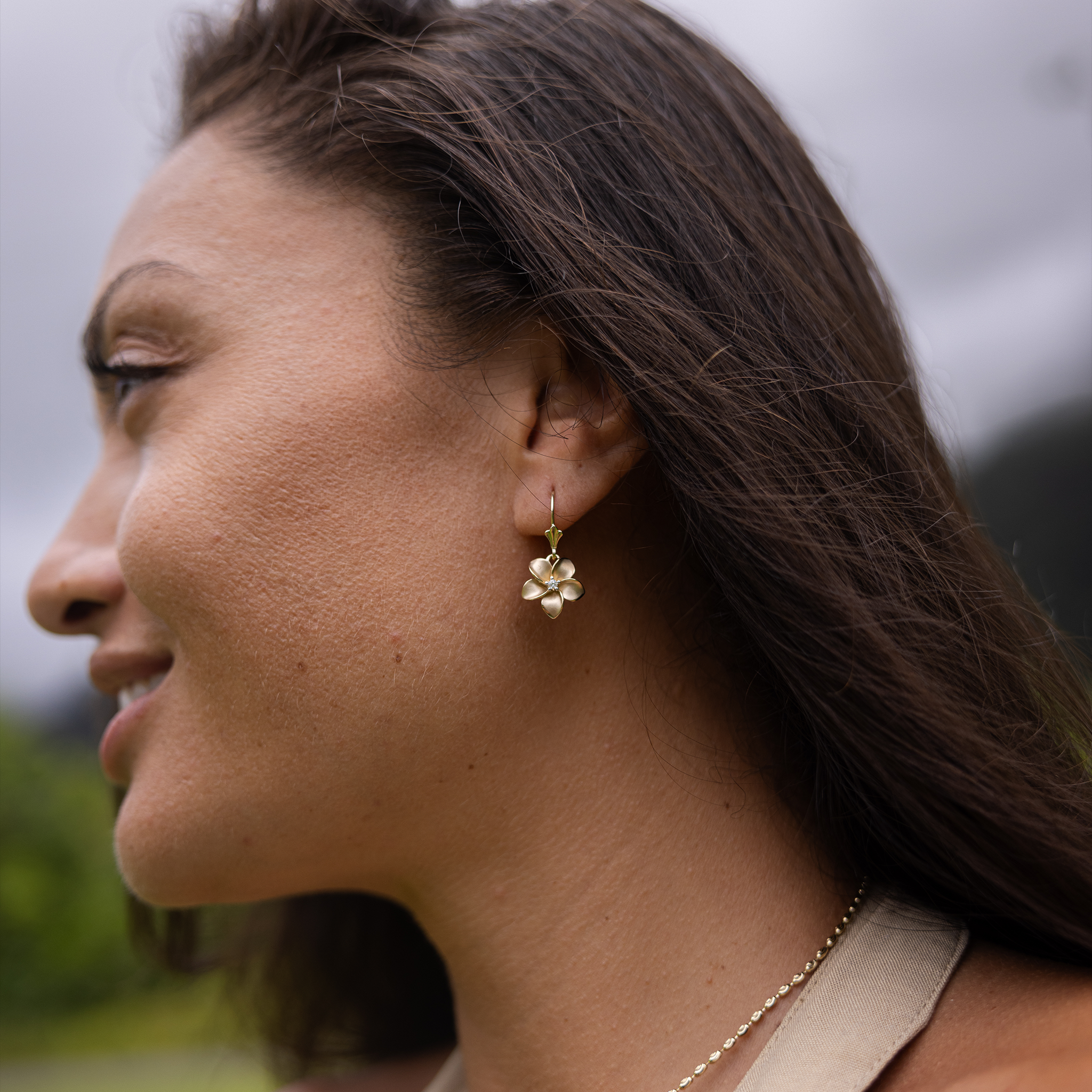 Plumeria Earrings in Gold with Diamonds - 13mm