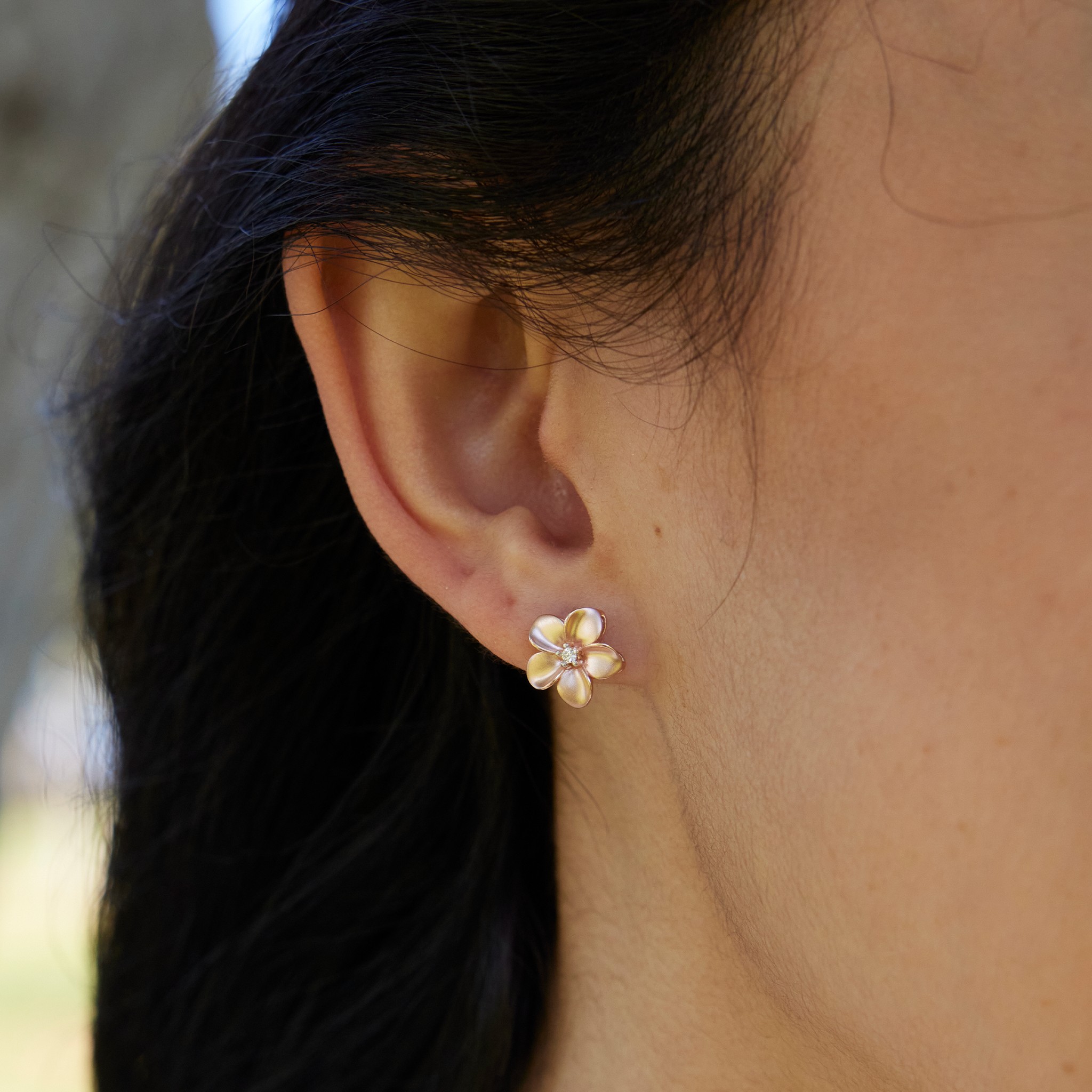 Plumeria Earrings in Rose Gold with Diamonds - 11mm