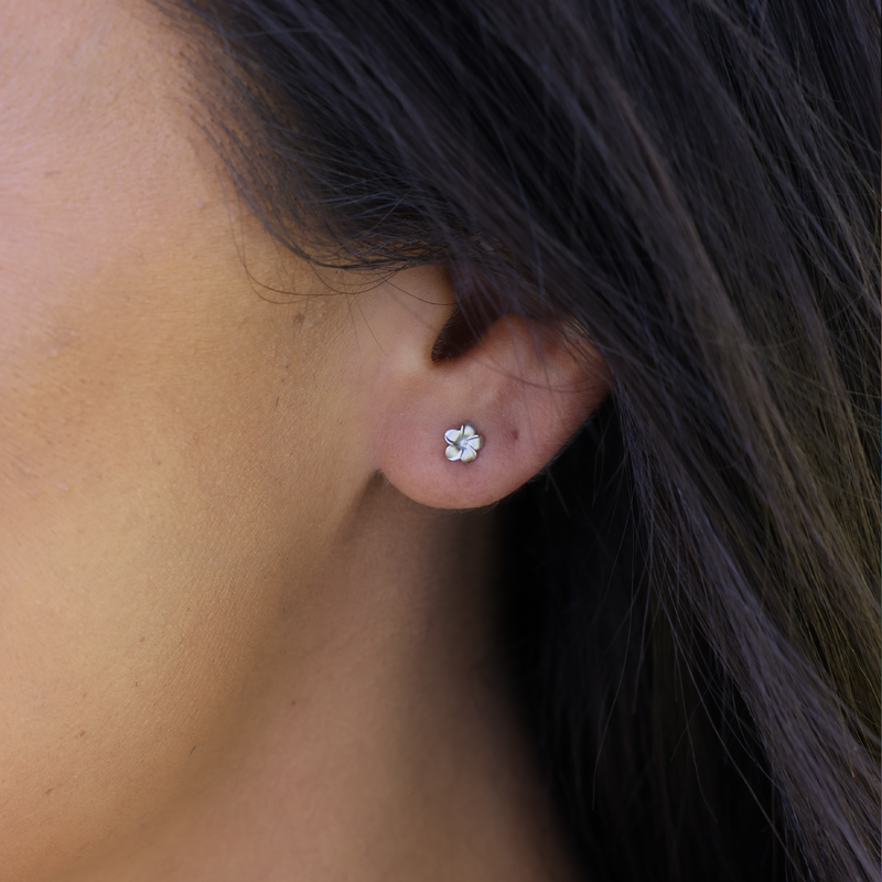 Plumeria Earrings in White Gold with Diamonds - 5mm