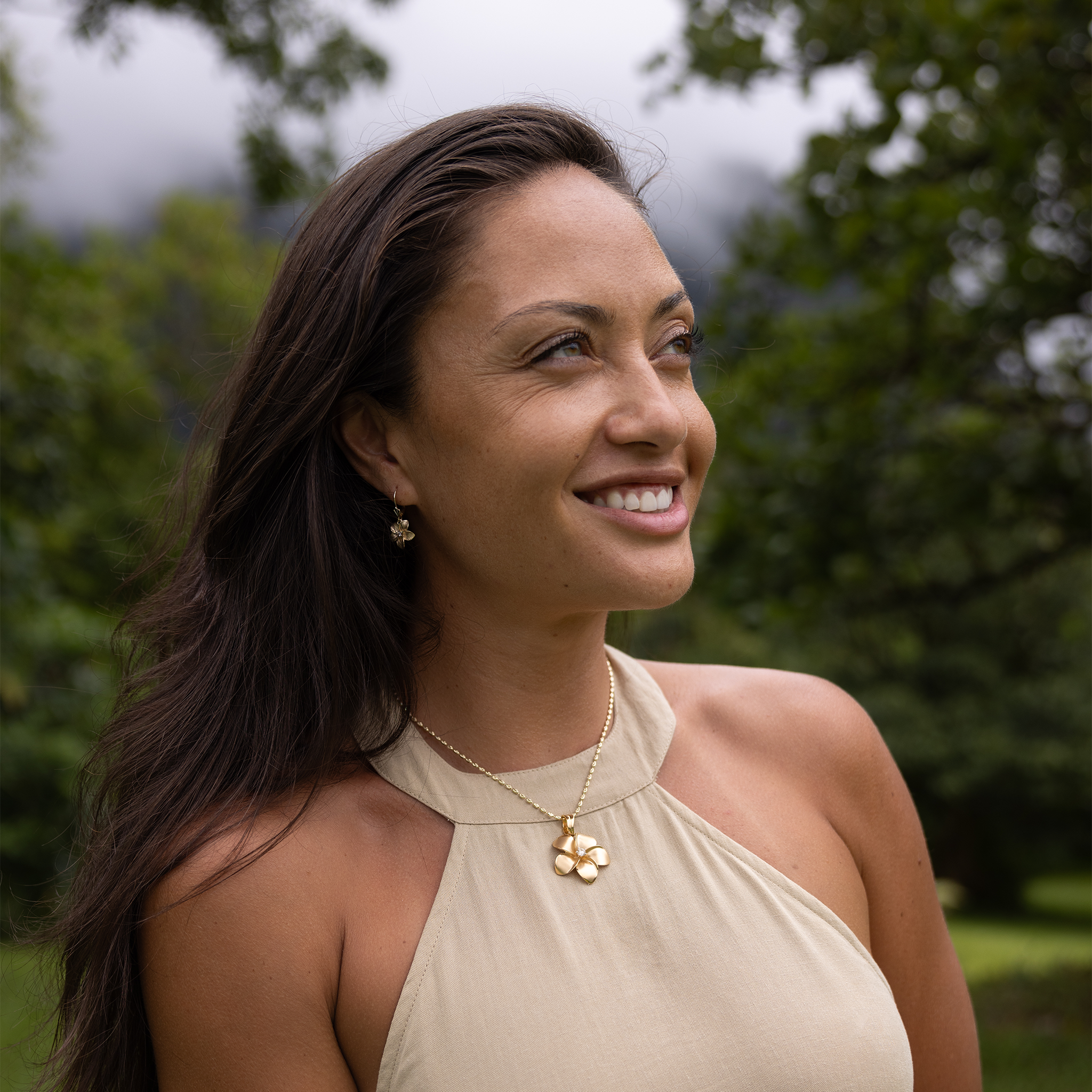 The Plumeria Collection is a symbol of beauty, grace, and charm. Wear this large statement piece inspired by the exotic and fragrant plumeria flower with pride. With glowing satin-finish and brilliant natural diamonds, this Plumeria Pendant forever holds your memories of the Islands.