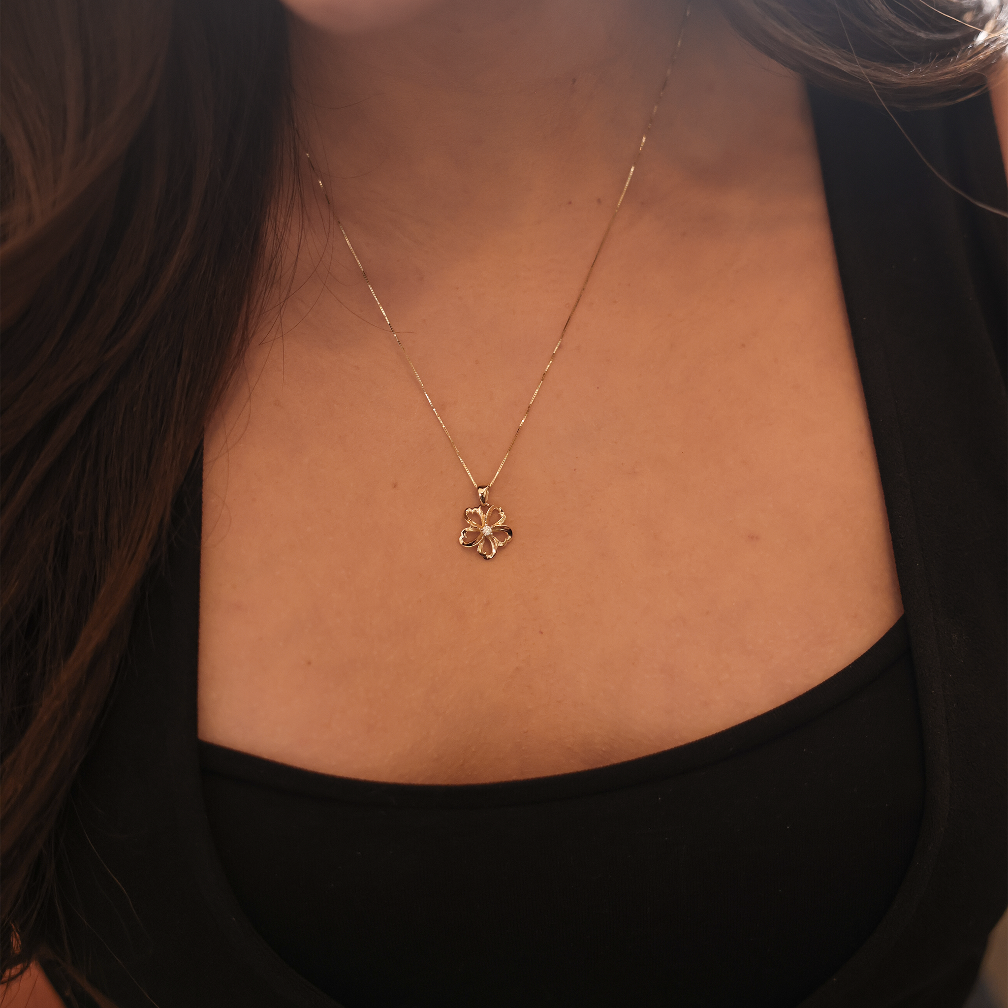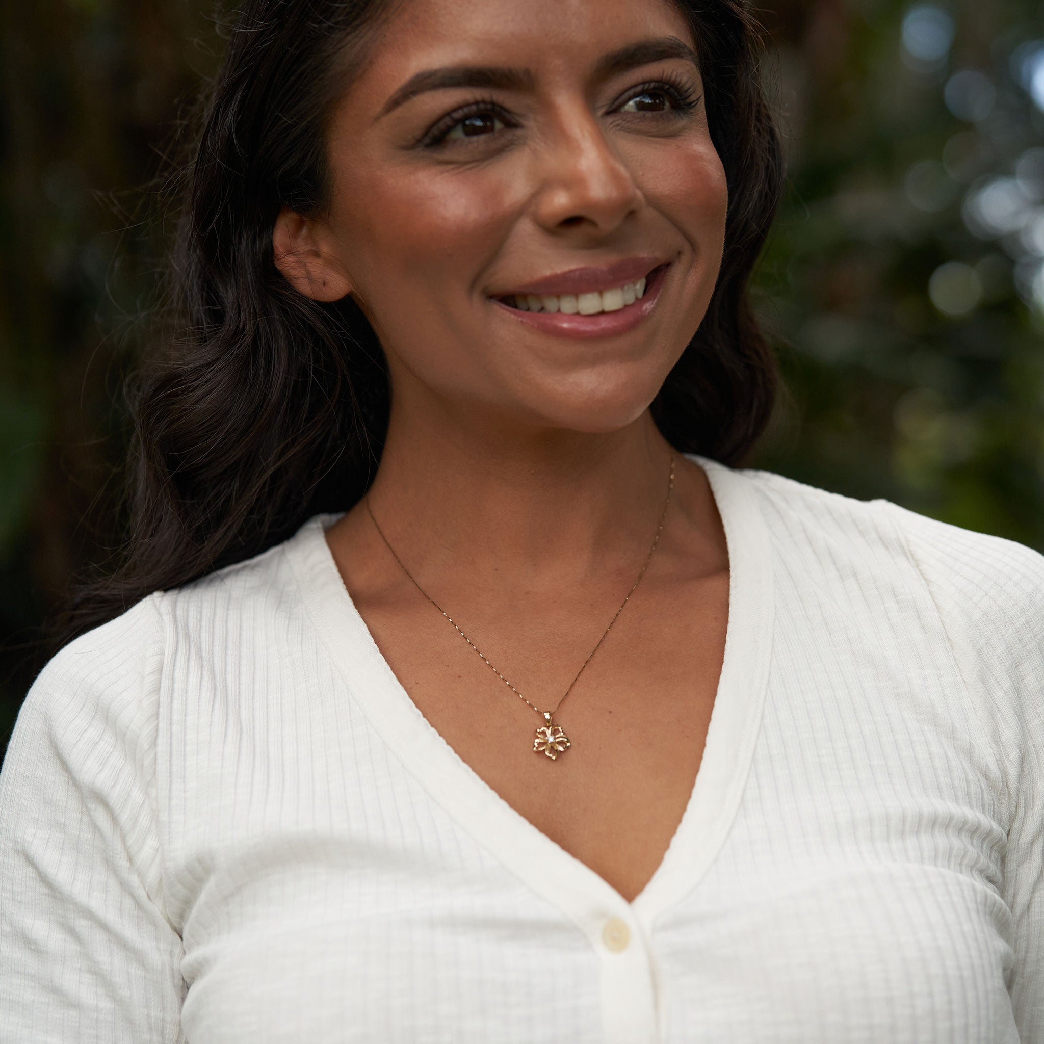 18" Plumeria Pendant Necklace in Gold with Diamond - 14mm