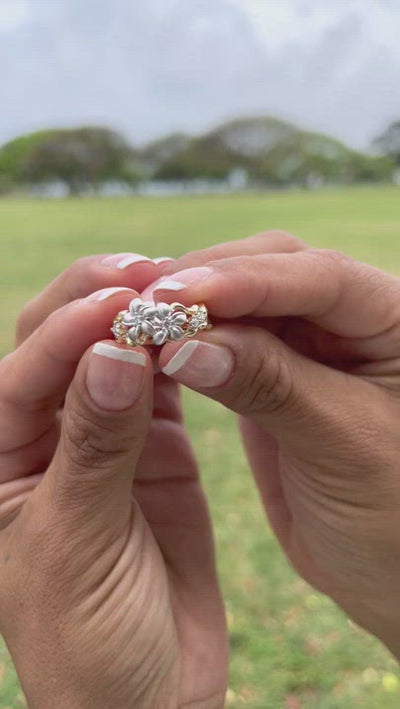 Plumeria Ring in Two Tone Gold with Diamonds - 10mm