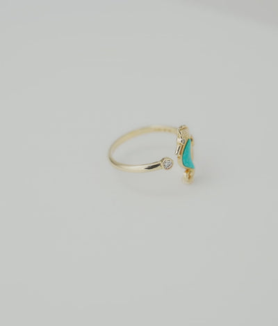 Sealife Seahorse Turquoise Ring in Gold with Diamonds - 15mm