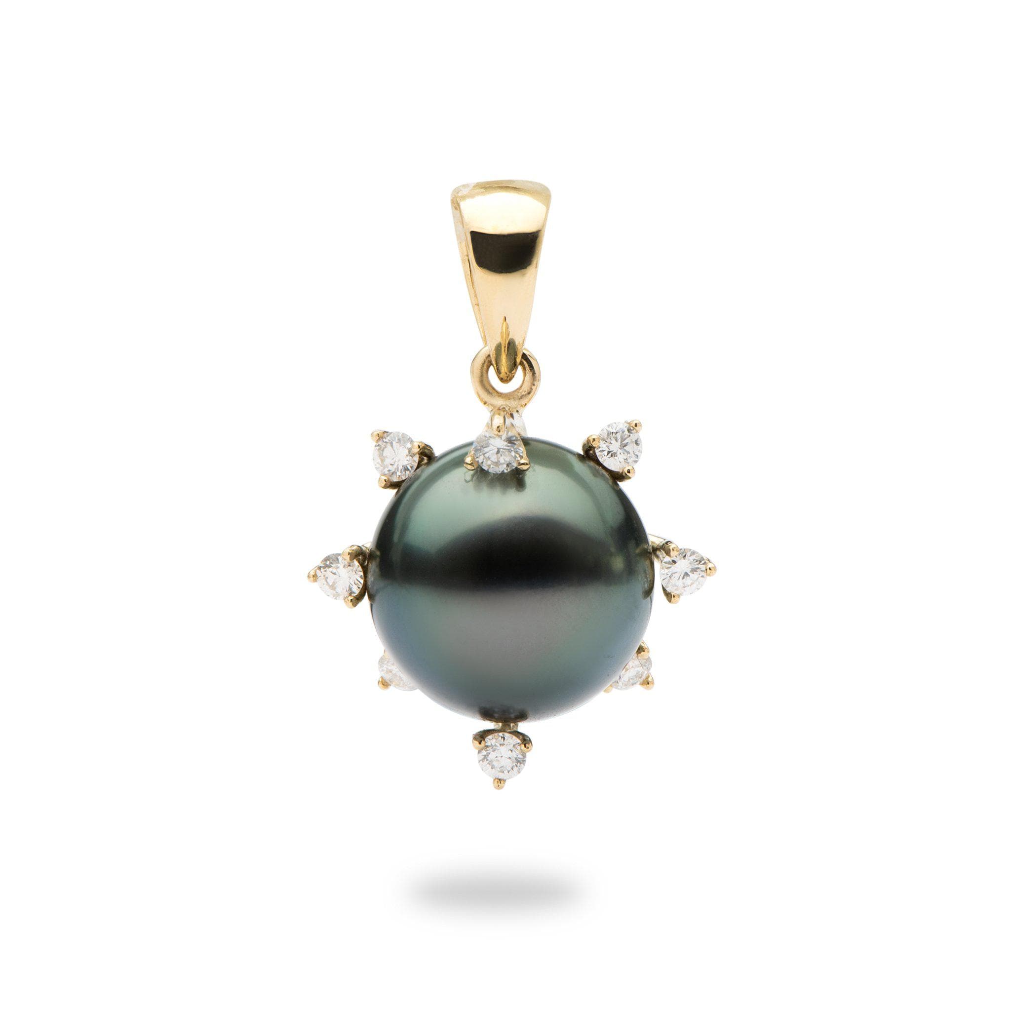 Protea Tahitian Black Pearl Pendant in Gold - 11-12mm