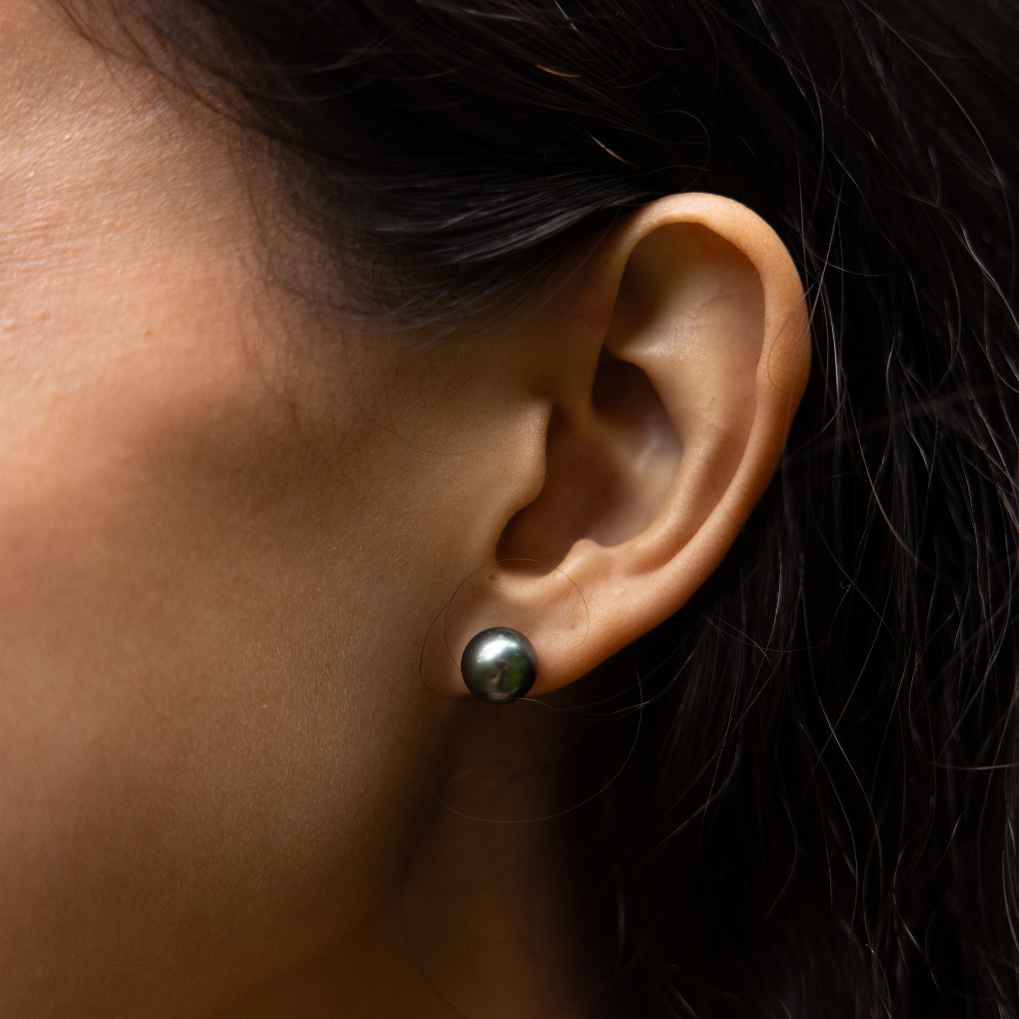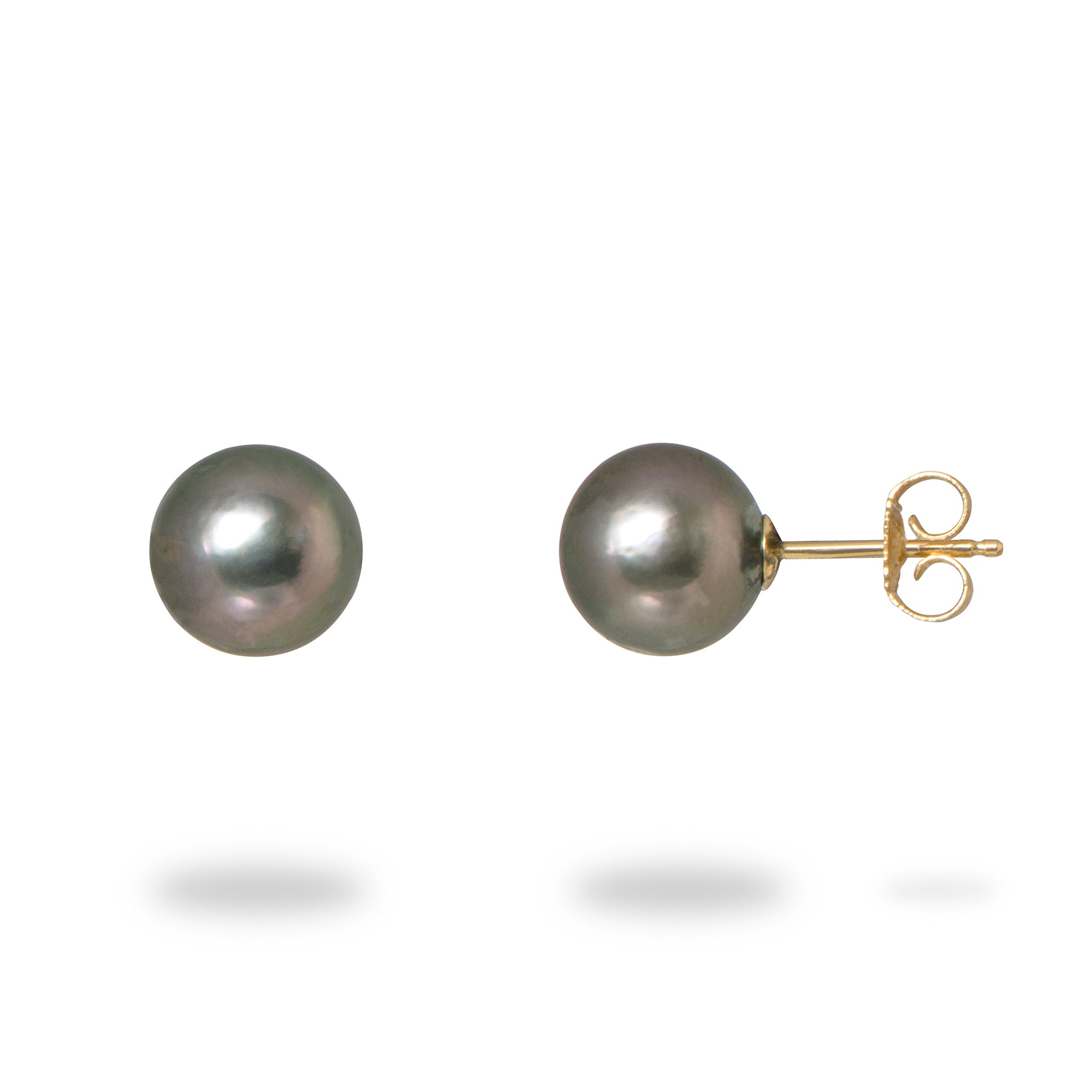 Tahitian Black Pearl Earrings in Gold - 8-9mm