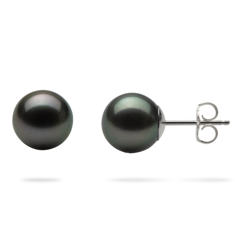 Tahitian Black Pearl Earrings in White Gold - 9-10mm