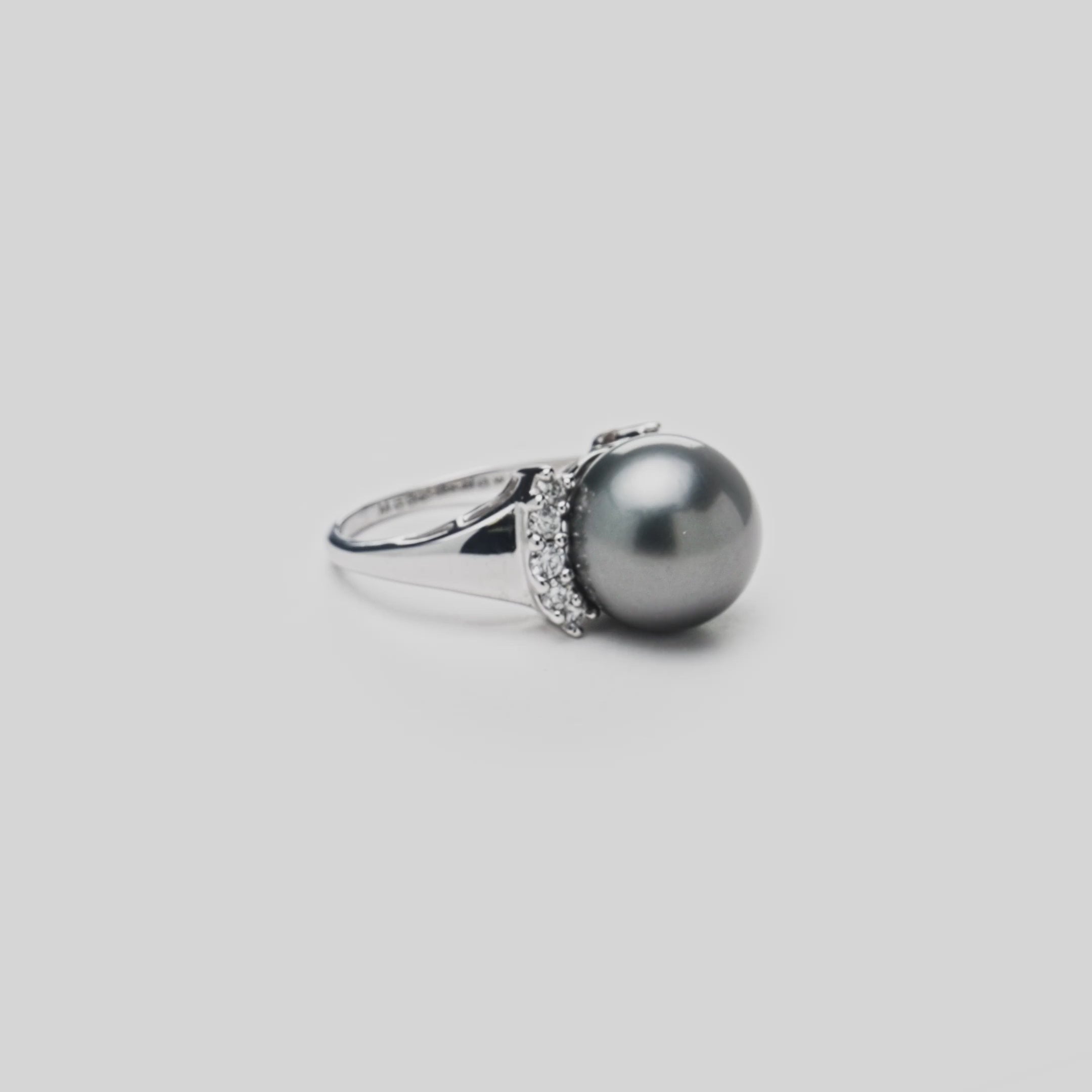 Tahitian Black Pearl Ring in White Gold with Diamonds - 12-13mm
