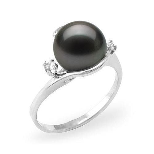 Tahitian Black Pearl Ring in White Gold with Diamonds - 9-10mm