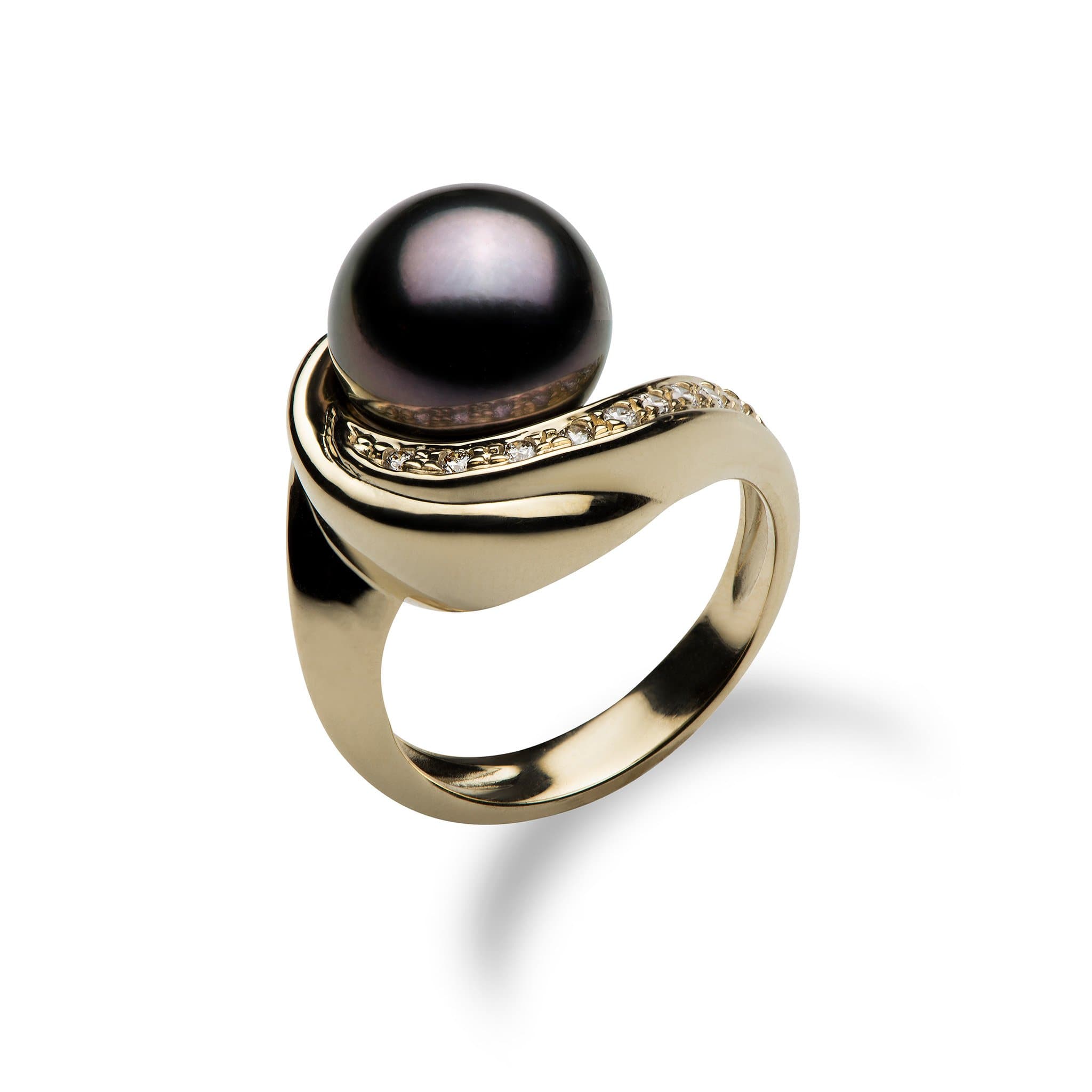 Tahitian Black Pearl Ring in Gold with Diamonds - 10-11mm