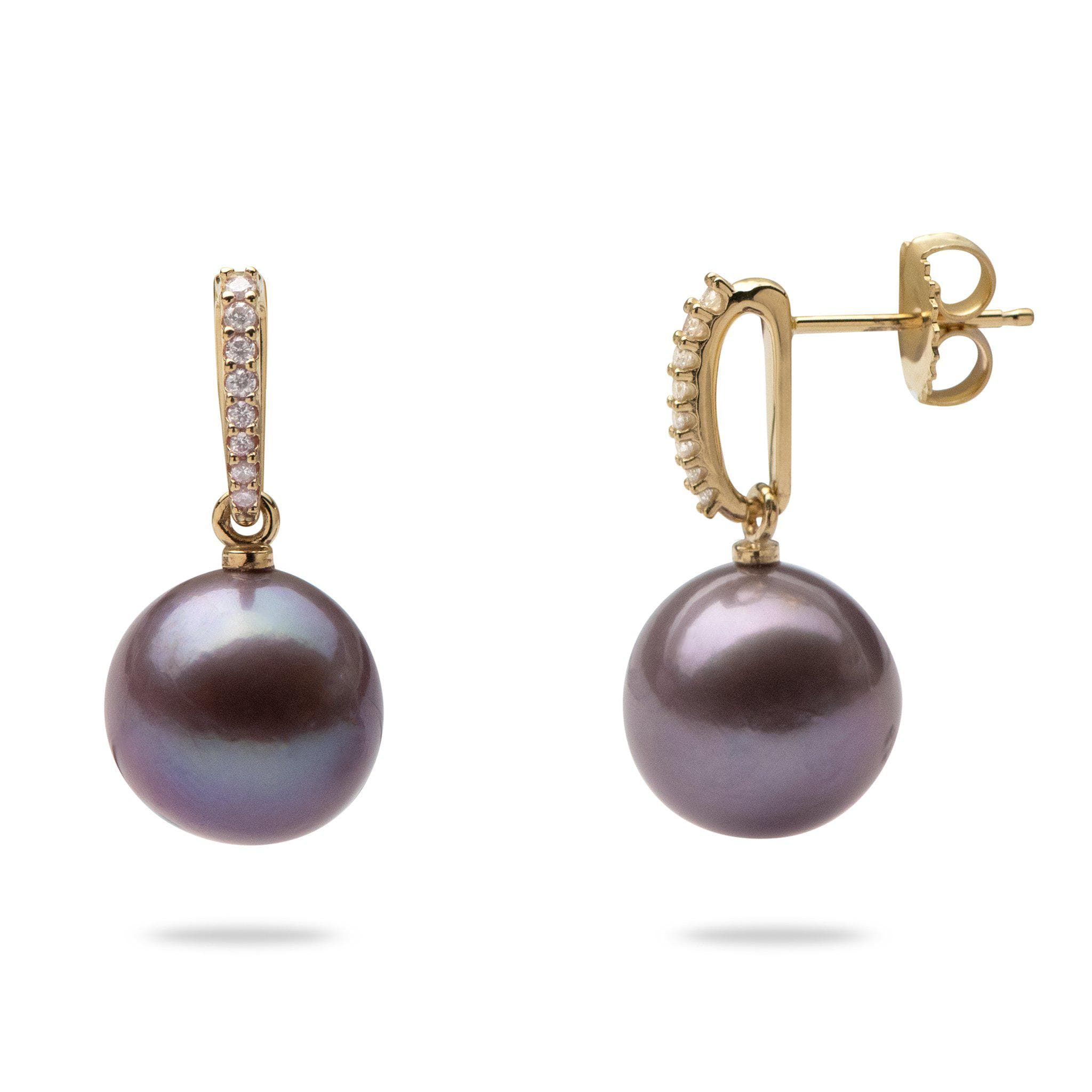 Ultraviolet Freshwater Pearl Earrings in Gold with Diamonds - 11-12mm
