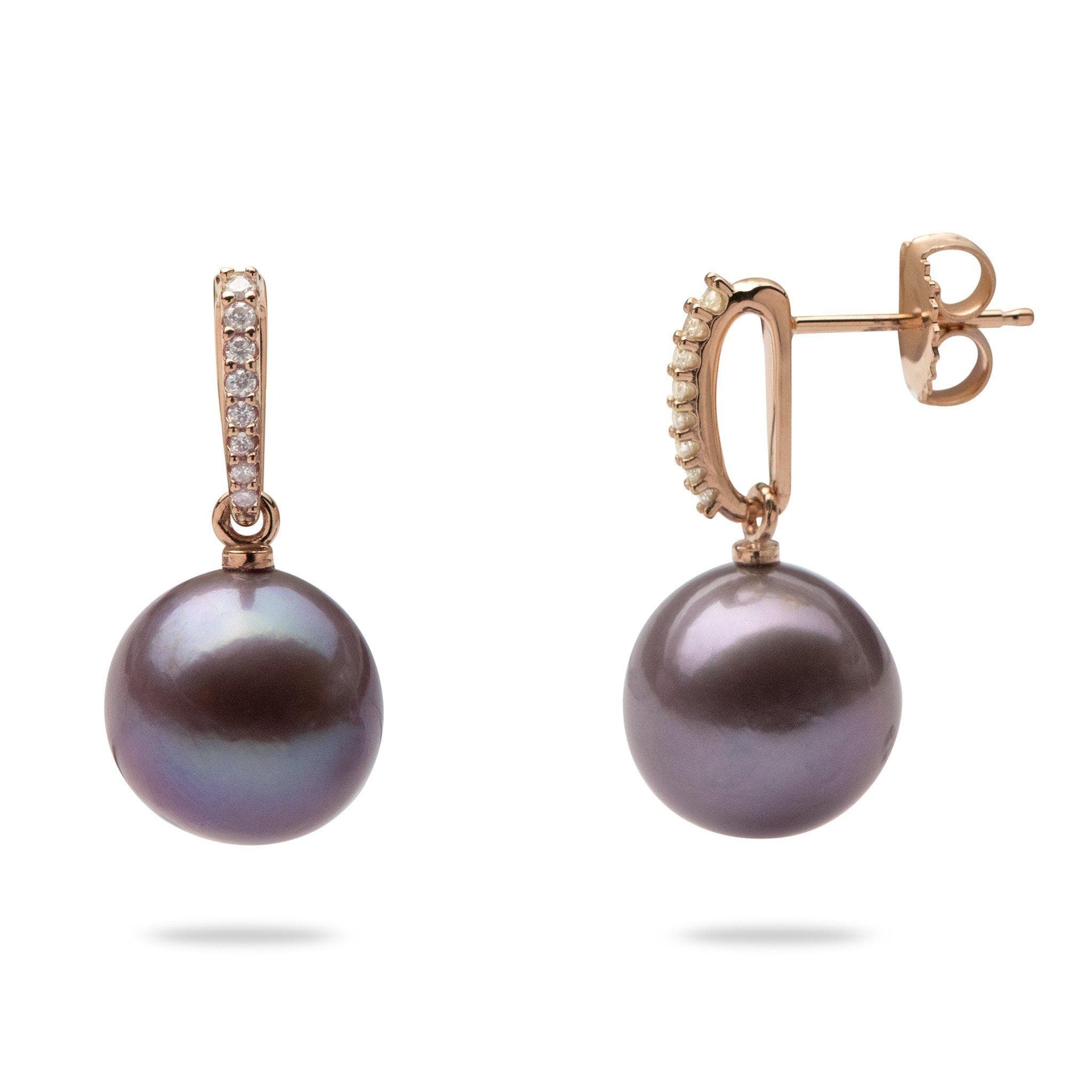 Ultraviolet Pearl Earrings in Rose Gold with Diamonds - 11-12mm