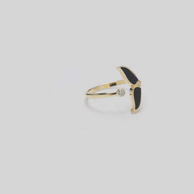 Sealife Whale Tail Black Coral Ring in Gold with Diamonds - 15mm