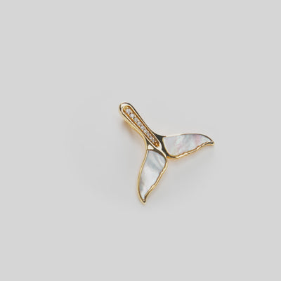 Sealife Whale Tail Mother of Pearl Pendant in Gold with Diamonds - 22mm
