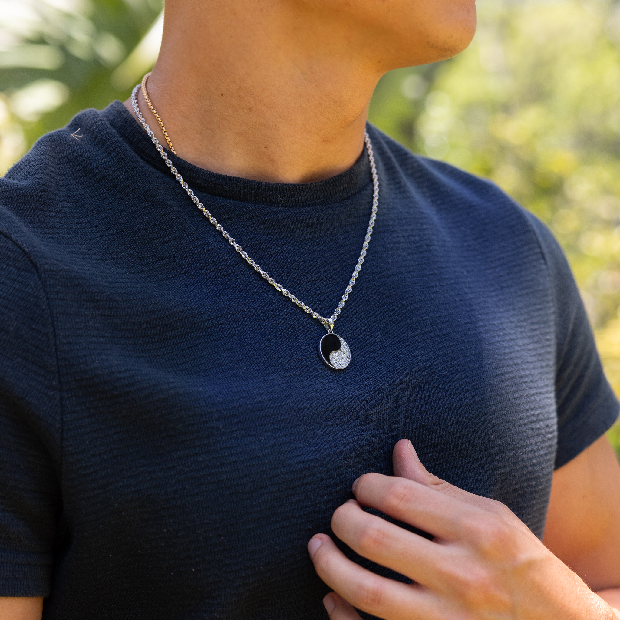 Yin Yang Black Coral Pendant in White Gold with Diamonds - 20mm